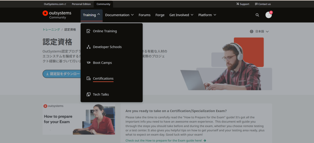 1.「トレーニング / 認定資格」にアクセス