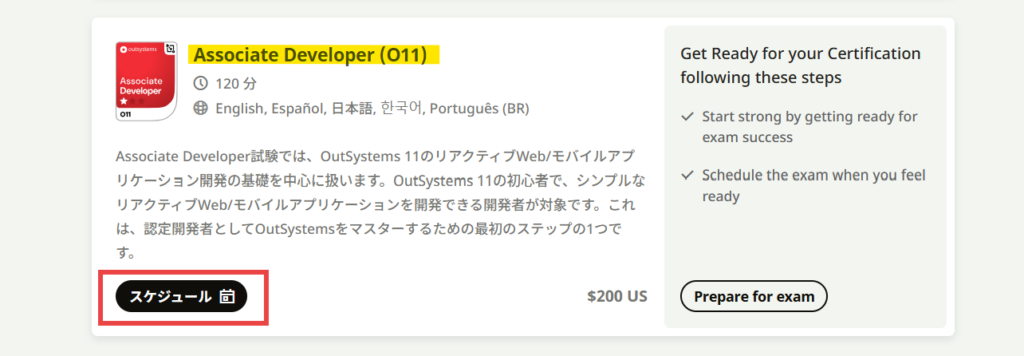 1.「Associate Developer (O11)/スケジュール」にアクセス