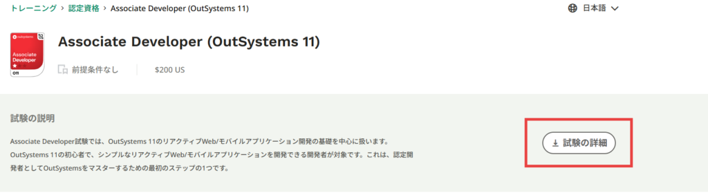 3.「試験の詳細」をクリック