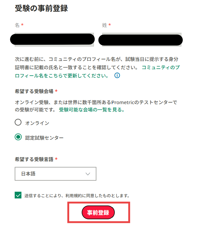 - 希望する試験会場の選択(オンライン/認定試験センター)