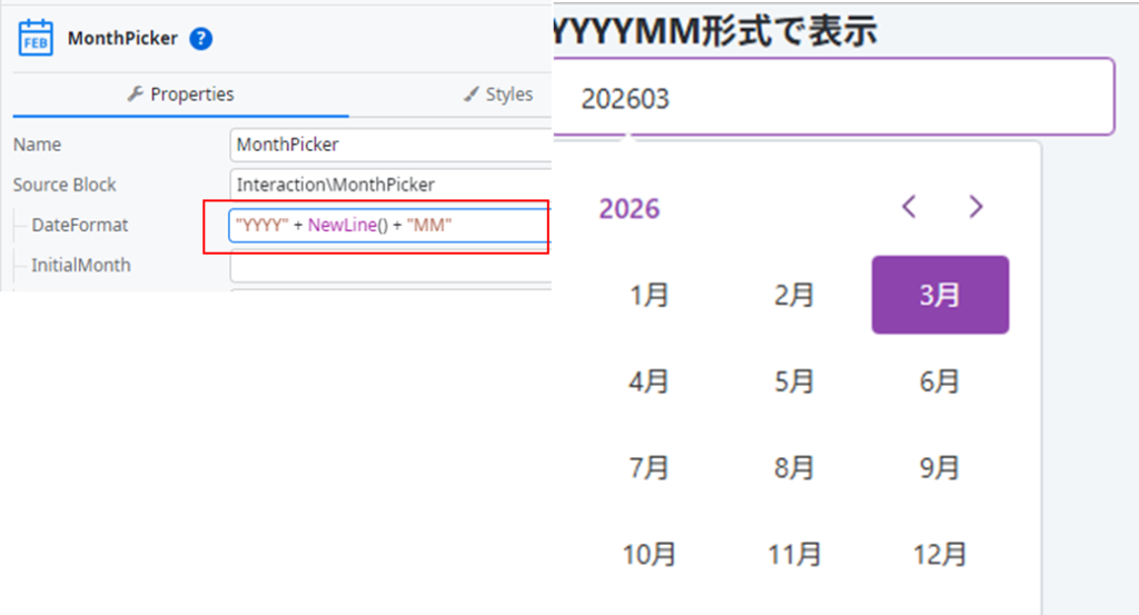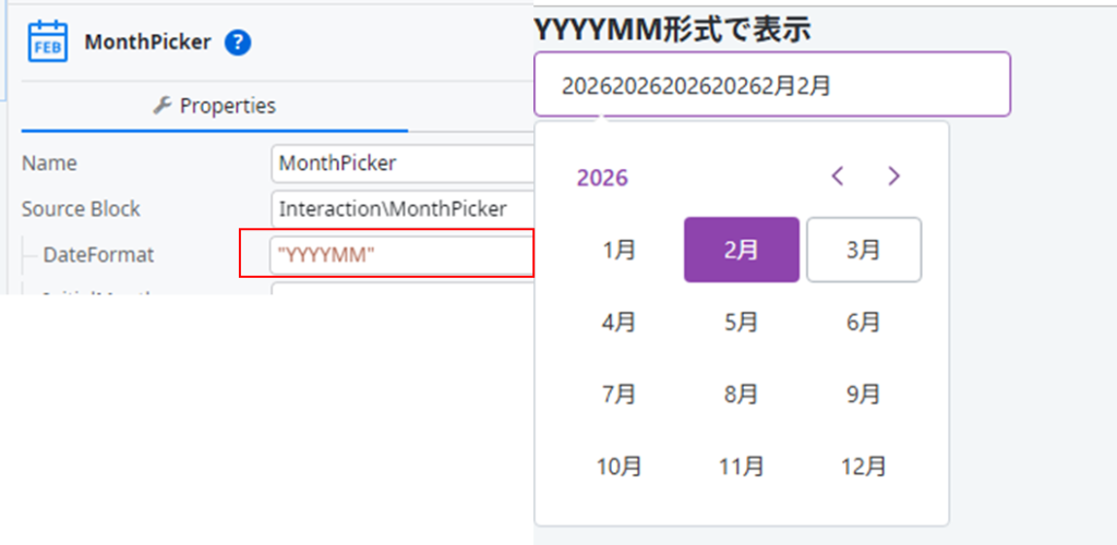 MonthPickerの DateFormat に “YYYYMM” を設定したのに意図通り表示されないのは、
